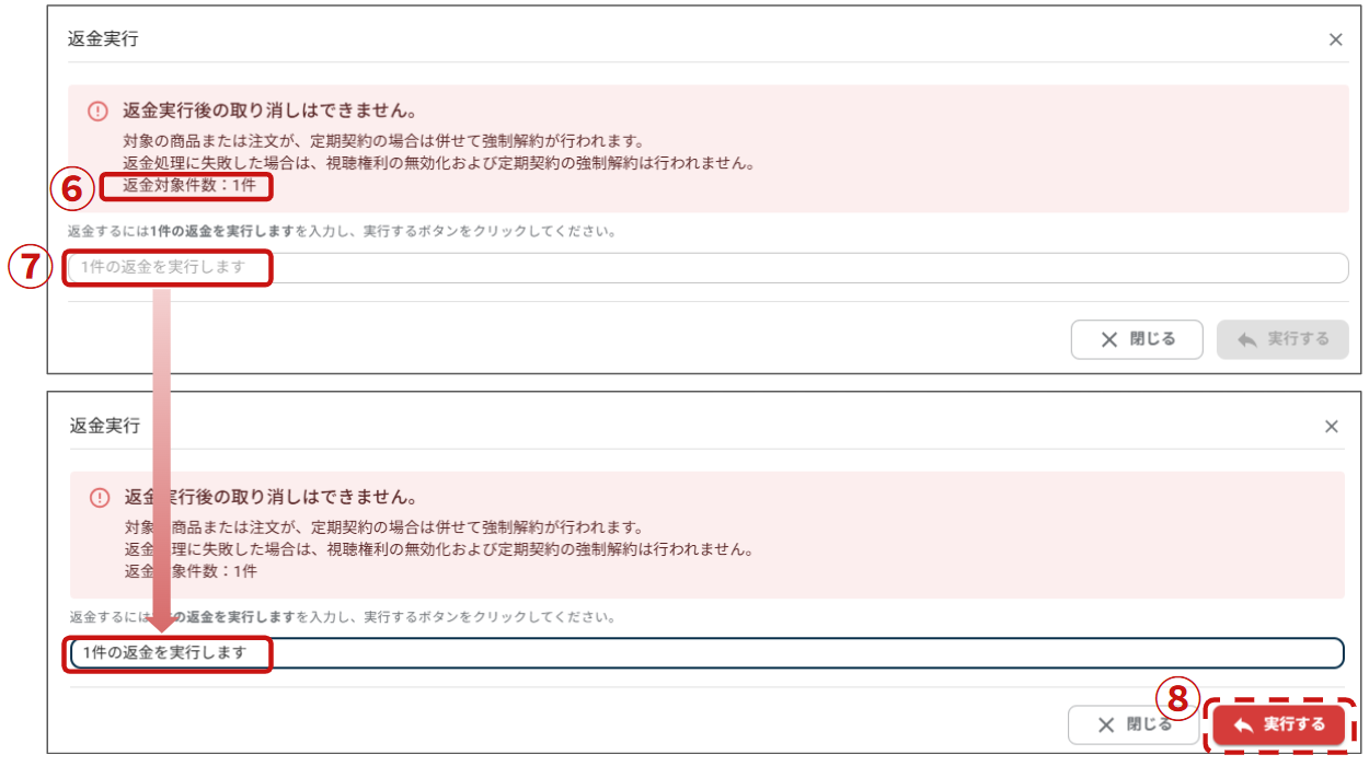 ⑦入力欄には返金件数にあわせ「●件の返金を実行します」と入力します