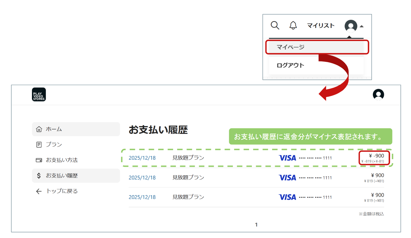 会員が商品の購入やレンタル、または定期契約(サブスクリプション)で支払いをした後に、返金処理を行う手順を下記に記述します。