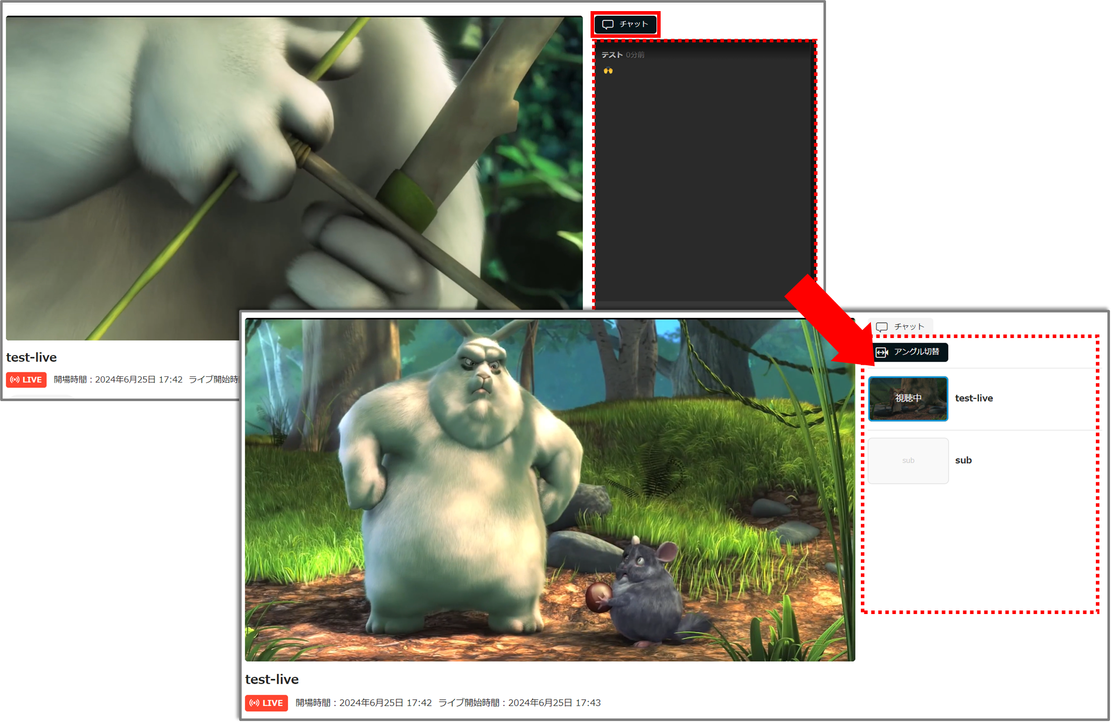 チャット付きのライブ配信が多い事業者には便利な機能が、標準機能として利用できます。