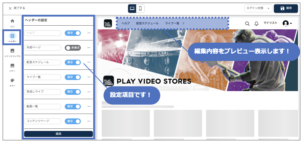 登録した動画コンテンツが本ページに自動で表示されます。