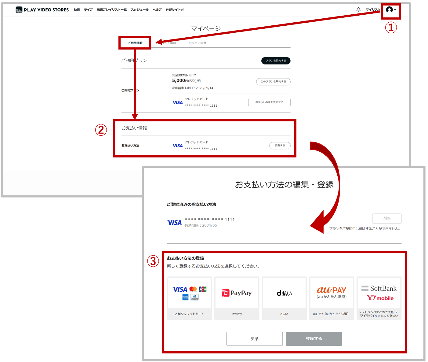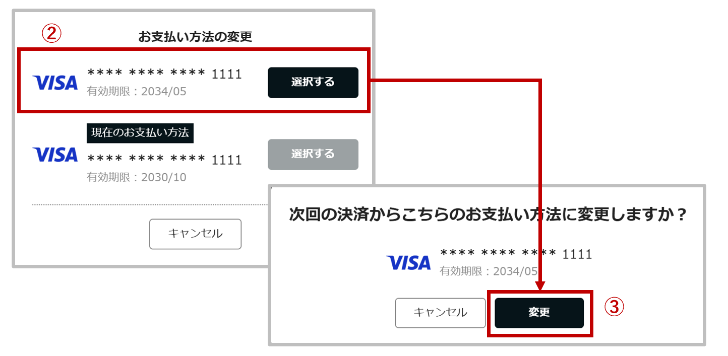 支払い方法の変更には、以下の2ステップを行う必要があります。