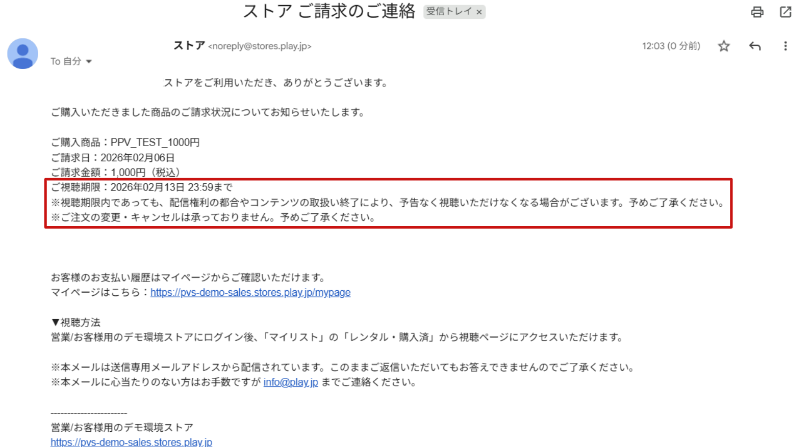 購入完了メール内でも以下の内容で視聴期限をお知らせいたします。