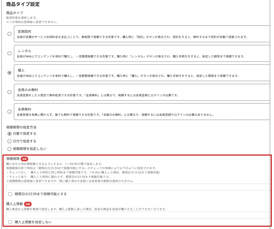 ※購入日から何日間視聴できるようにするか、1〜365日の間で指定します。